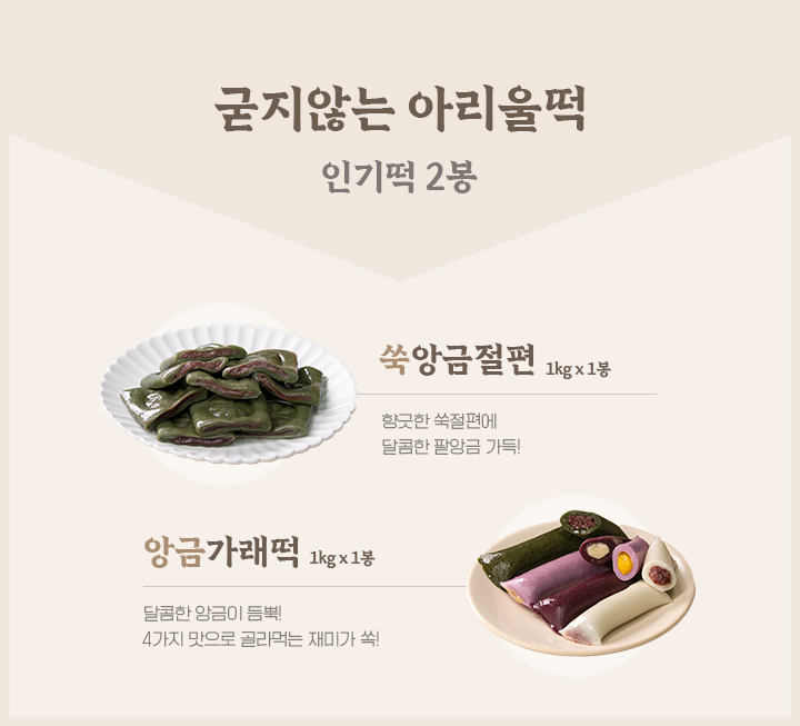 [TV방송상품](m)아리울떡공방 BEST상품 구성 2kg(쑥앙금절편+앙금가래떡)