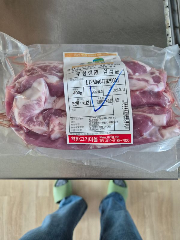 옵션: 무항생제 삼겹살 구이용 400g / 400g X 1팩