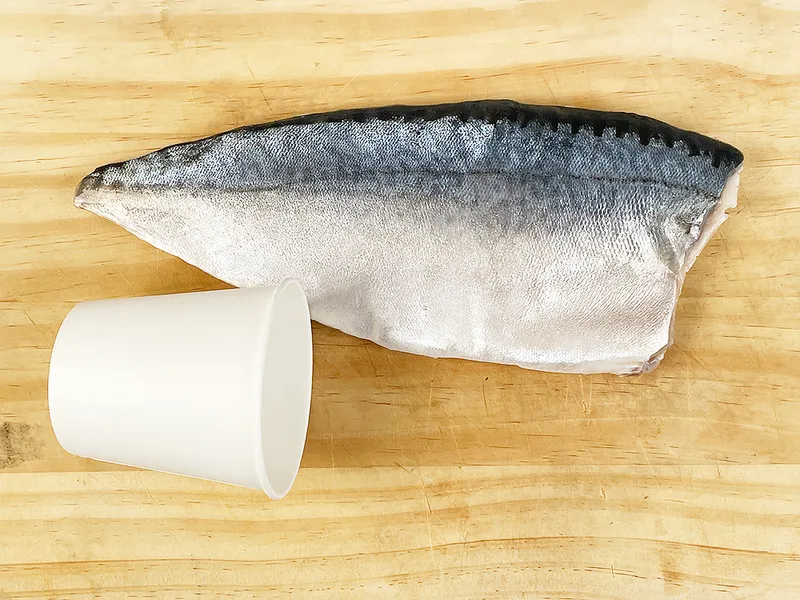 껍질을 벗길 때는 천천히 벗겨주셔야 살이 패이지 않고 고등어의 무늬를 잘 살릴 수 있습니다.