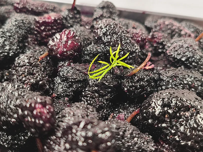 오디는 안토시아닌이 풍부해 노화를 막아주고 피부 미용에도 도움을 주는 과일이에요. 달콤하고 시원한 오디의 상큼함이 입안 가득 퍼져요.