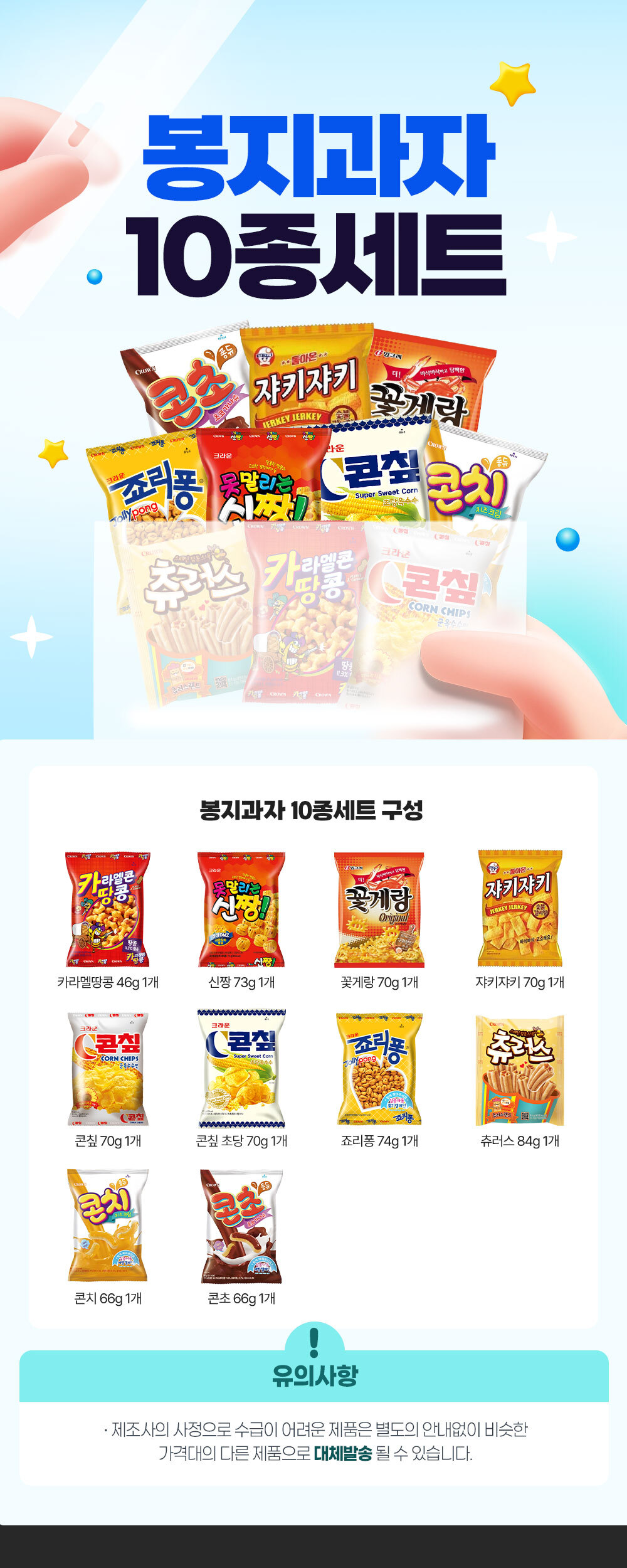 [G] 크라운 봉지과자 10종 세트 / 콘칲 죠리퐁 신짱 꽃게랑 츄러스