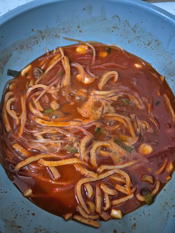 떡없는.. 떡대신 어묵채와 당면이 있는 떡볶이네요~ 집에서 간단히 먹기 좋습니다. 떡볶기떡이나 만두,튀김 추가해서 먹어도 좋를듯 합니다.