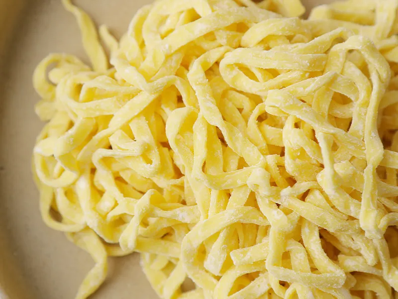 소화가 어려운 밀가루에 천연치자가루를 넣어 정성껏 반죽했어요. 덕분에 부담없이 즐길 수 있죠. 먹음직스러운 노란 빛깔이 더욱 입맛을 돌게 한답니다.
