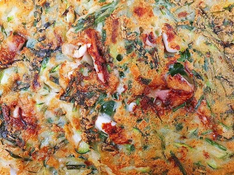 쫄깃한 오징어와 향긋한 부추가 환상의 궁합을 이루는 오징어 호박 부추전입니다. 달큼한 호박까지 들어가 바삭하고 쫄깃한 식감 속에 은은한 부드러움이 일품이에요. 얇게 부쳐내 더욱 바삭바삭한 부추전, 밥 반찬으로도 좋고 술 안주로도 제격이랍니다.