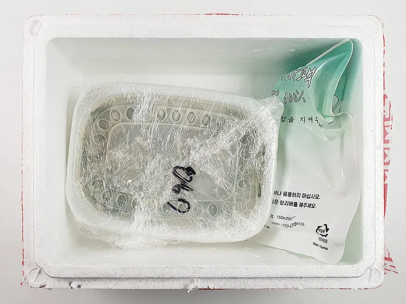 아이스박스에 완충재와 아이스팩을 동봉해서 발송해 드립니다.