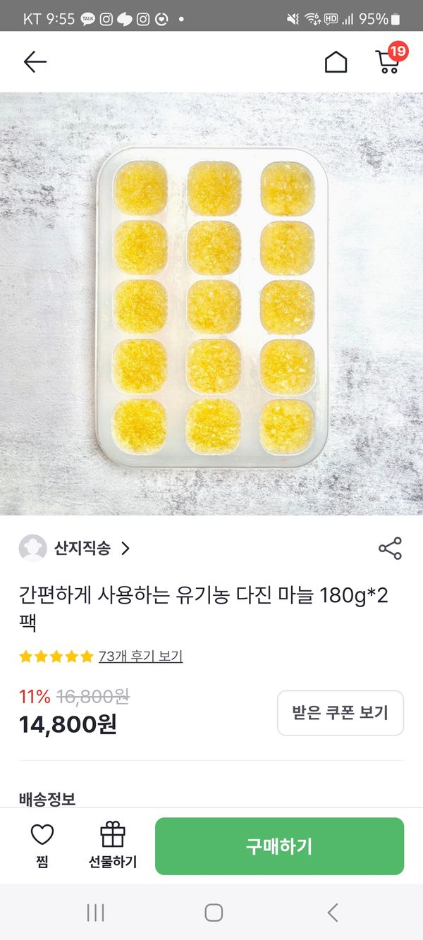 옵션: 유기농 다진 마늘 180g*2팩 (냉동)