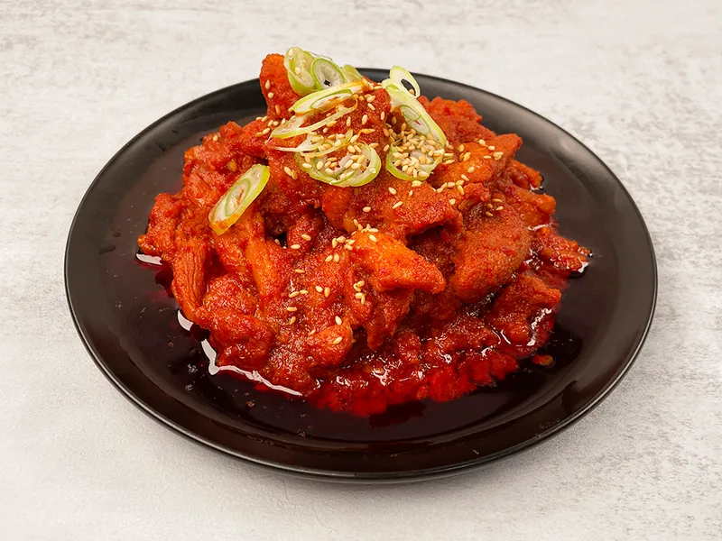 오리는 닭이나 소에 비해 지방 함량이 낮고 단백질 함량이 높은 편입니다. 여기에 감칠맛 가득한 양념을 더했습니다.