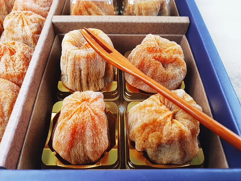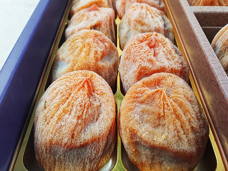 맛있는 곶감은 맛있는 감으로부터! 상주 둥시 감을 40-50일간 건조하여 촉촉함과 쫀득함이 더욱 살아 있습니다.