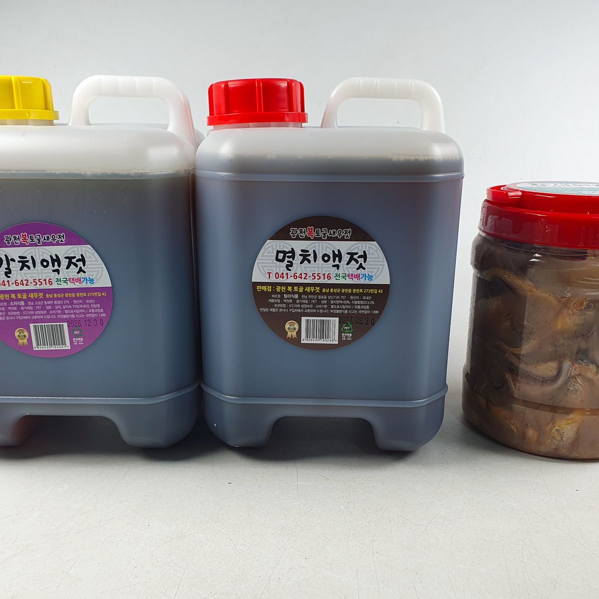잘받았습니다 포장 상태 굳. 배송전 알림도 감사. 할인받아 특가구입이라 기분최고 멸치액젓만 개봉했는데 냄새 찐~해요. 다음주 김장 기다려집니다.