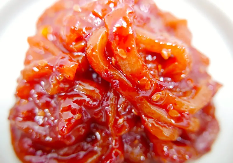 엄선된 오징어로 정성스럽게 만든 젓갈입니다. 매콤함 속에 감칠맛이 녹아들어 짭조름하면서도 깊은 맛을 느낄 수 있어요. 입안 가득 퍼지는 진한 풍미가 밥맛을 한층 살려줍니다.