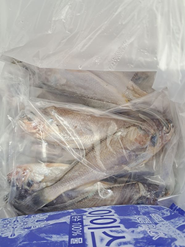 오랜만에 조기를 주문했는데 너무 맛나고 땡글탱글하네요. 흰밥에 조기만 올려서 밥 한공기 뚝딱 했습니다. 아래 사진은 점심에 먹을 친구랍니다.