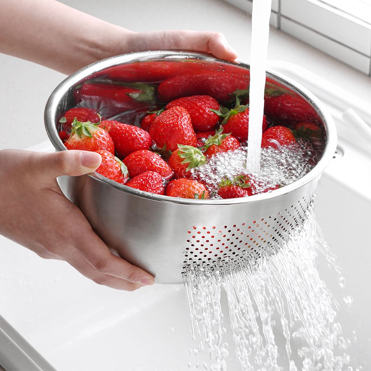 하나로 스텐 304 쌀 세척볼 M 23cm/ 멀티 믹싱볼 다용도 타공 물빠짐 채반