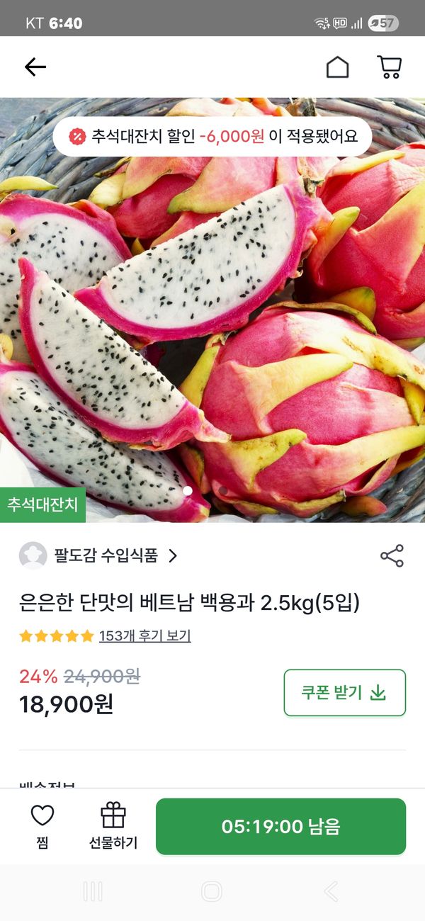 크고 맛있어요 마트에 파는 용과보다 더 맛있네요 잘 먹겠숩니다~