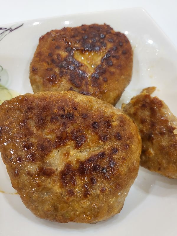 아들이 밥버거를 좋아하는데 거기에 넣어서 먹으면 넘 맛있는 떡갈비입니다 팬에 귑기는 모양이 어렵게 만들어져 있어서 에어프라이기에 구워서 먹으면 맛있어요