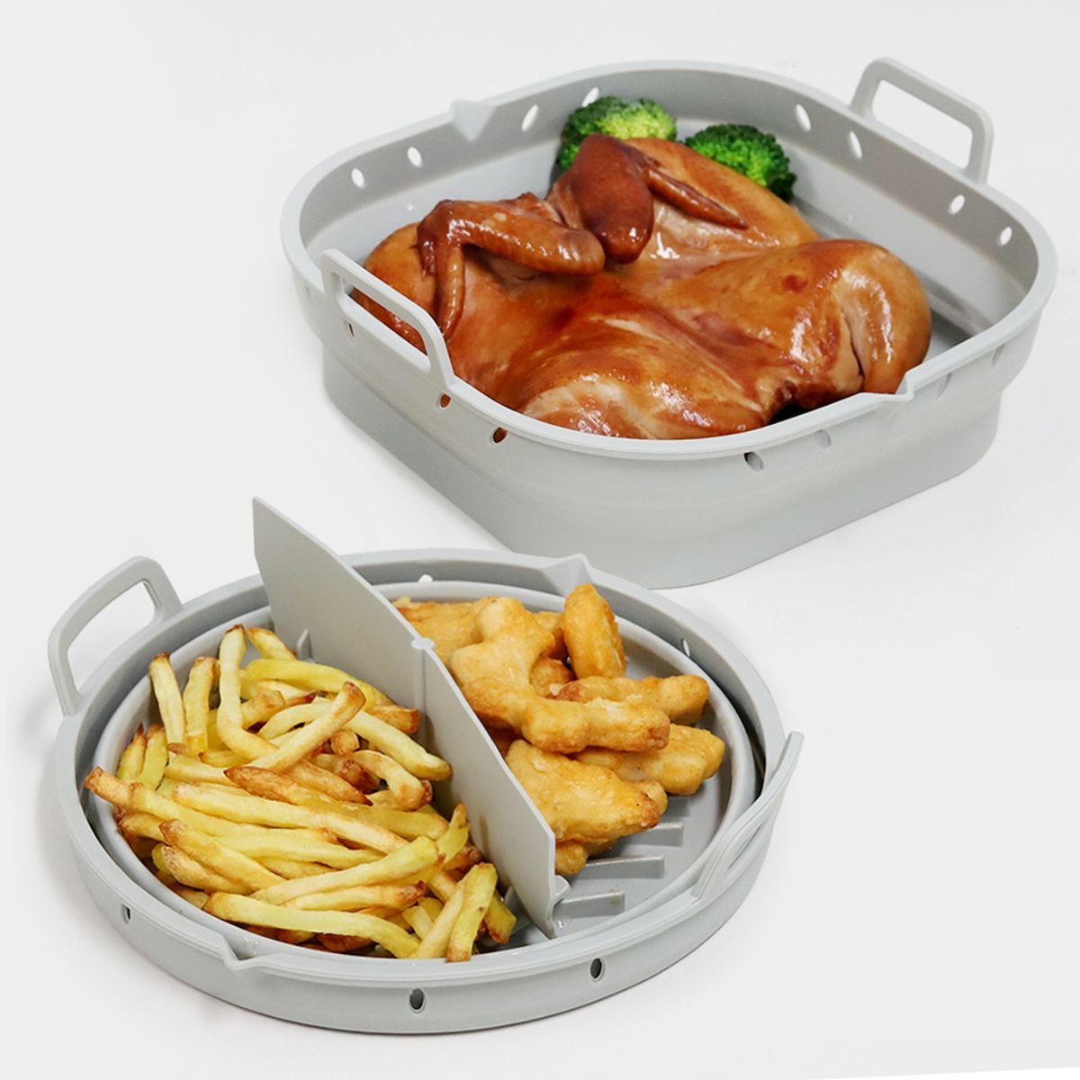 플래티넘 실리콘 에어프라이어 접이식 용기 (대형/19cm) / 접이식 칸 분리형 전자레인지 오븐 그릇