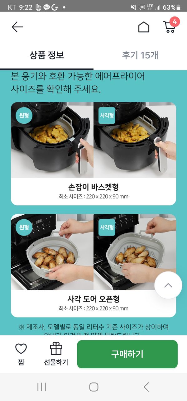 옵션: 에어프라이어 실리콘 용기 (사각형)