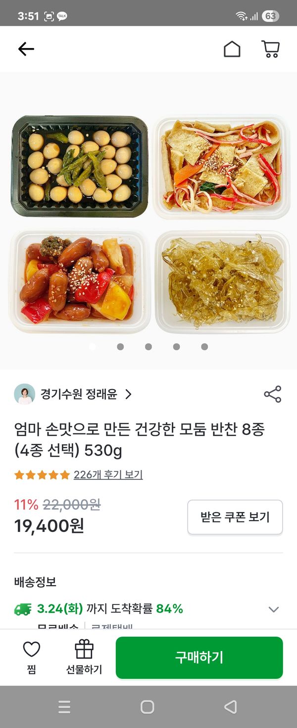 토마토 떡갈비는 양념도 맛있고 고기.야채도 싱싱해요 꽈리고추 가문어는 달지도.짜지도 않고 단백하니 맛있어서 재주문 들어갑니다 시래기나물은 뚜껑 열자마자 들기름향이 미쳤어요 짜지않고 단백하니 맛있어요 다른 나물도 구매하러 가야겠어요 메추리알장조림은 짜지 않고 맛있어요