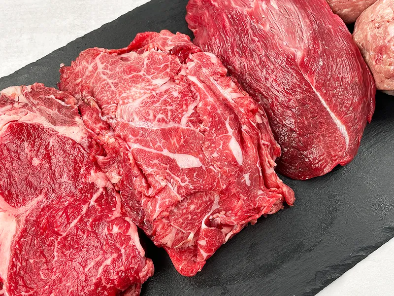 진공 포장 시 육색이 흑갈색을 띨 수 있지만 개봉 시 본연의 색으로 돌아옵니다.
