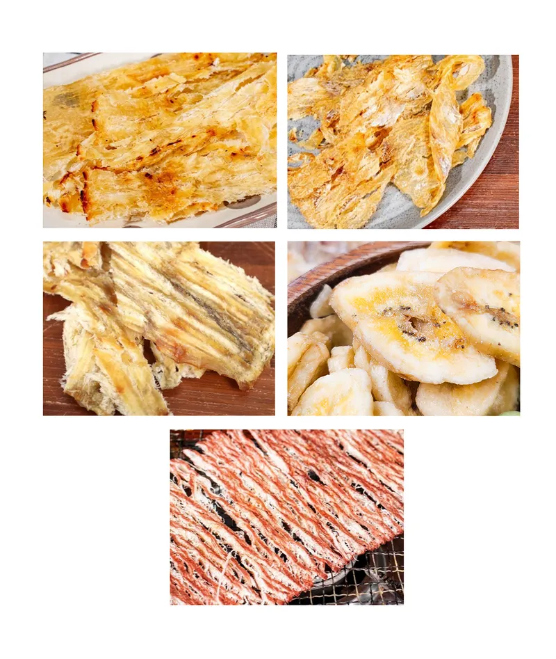 한 번 먹으면 계속 입속으로 넣고 싶은 건어물입니다. 아이들은 달콤한 바나나칩을 간식으로, 어른들은 쫄깃한 오징어를 맥주 안주로 즐겨보세요~