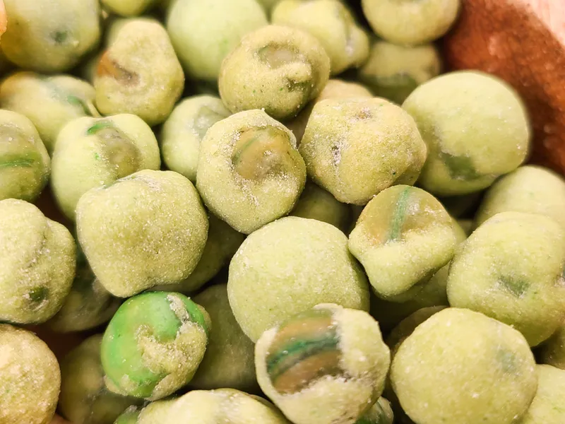 톡 쏘는 매콤 알싸함이 매력적인 와사비 완두콩입니다.