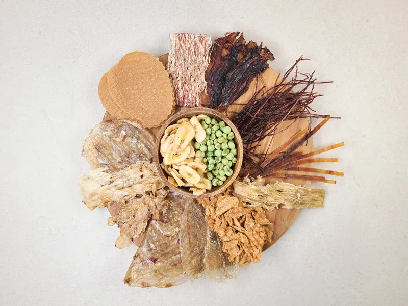 5. 옵션. 구운양태채 + 구운쥐포채 + 구운보리멸채 + 바나나칩 + 맥반석구이오징어
