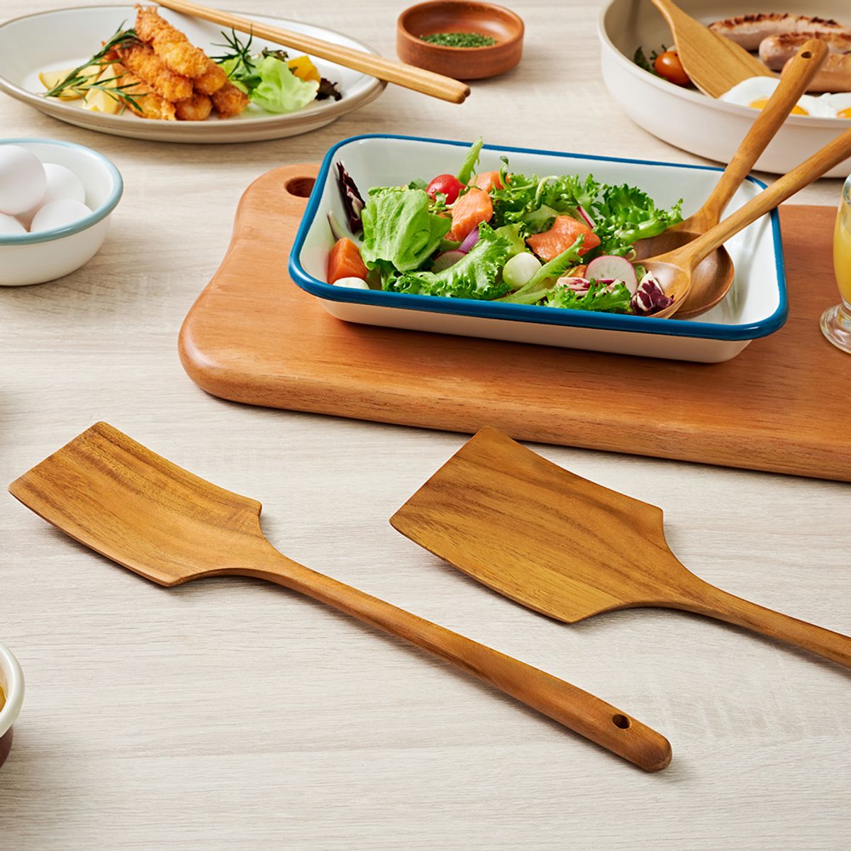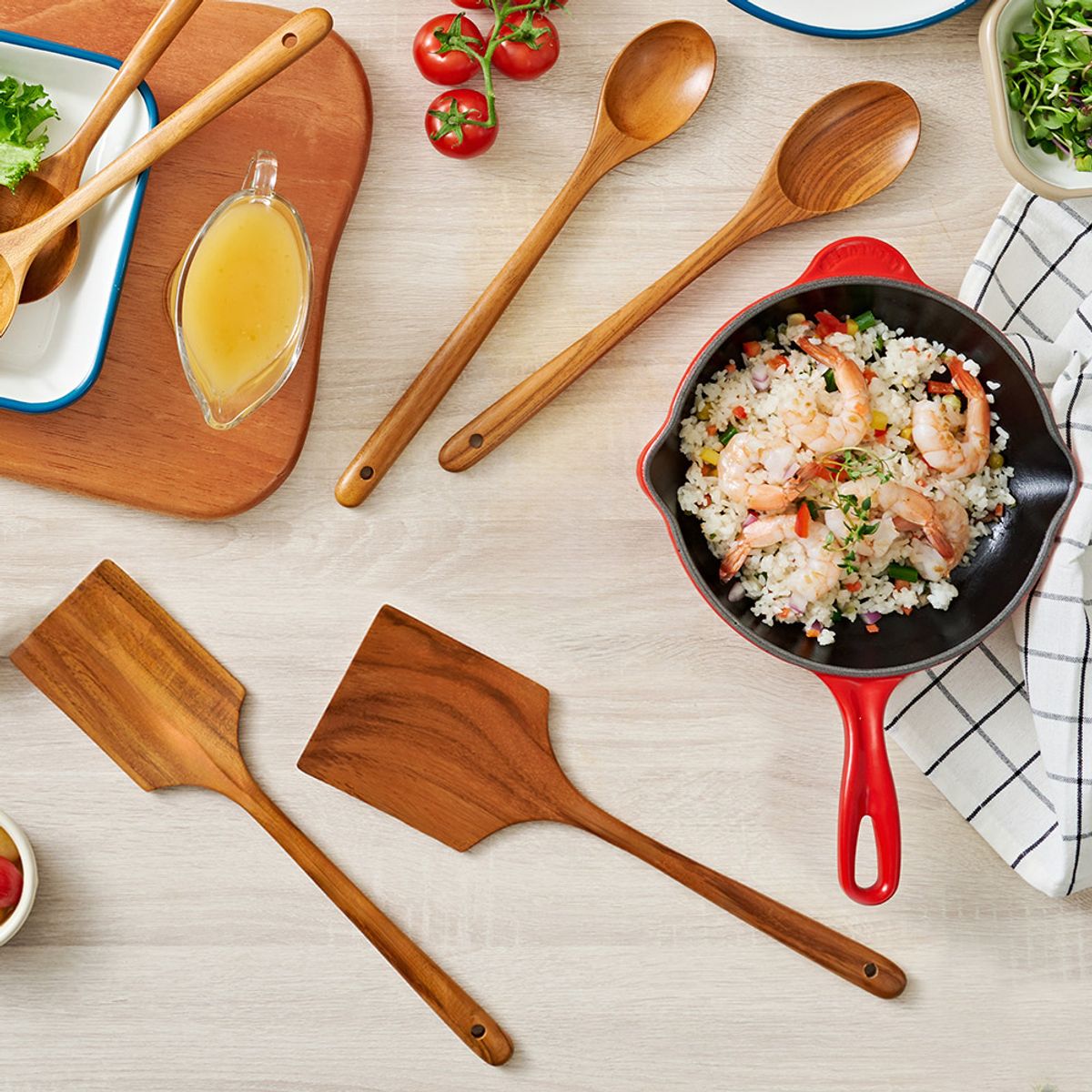 파뷔에 티크 우드 항균 조리도구 4종 세트 (C타입) (볶음스푼중+볶음스푼대+사각뒤집개중+사각뒤집개대)