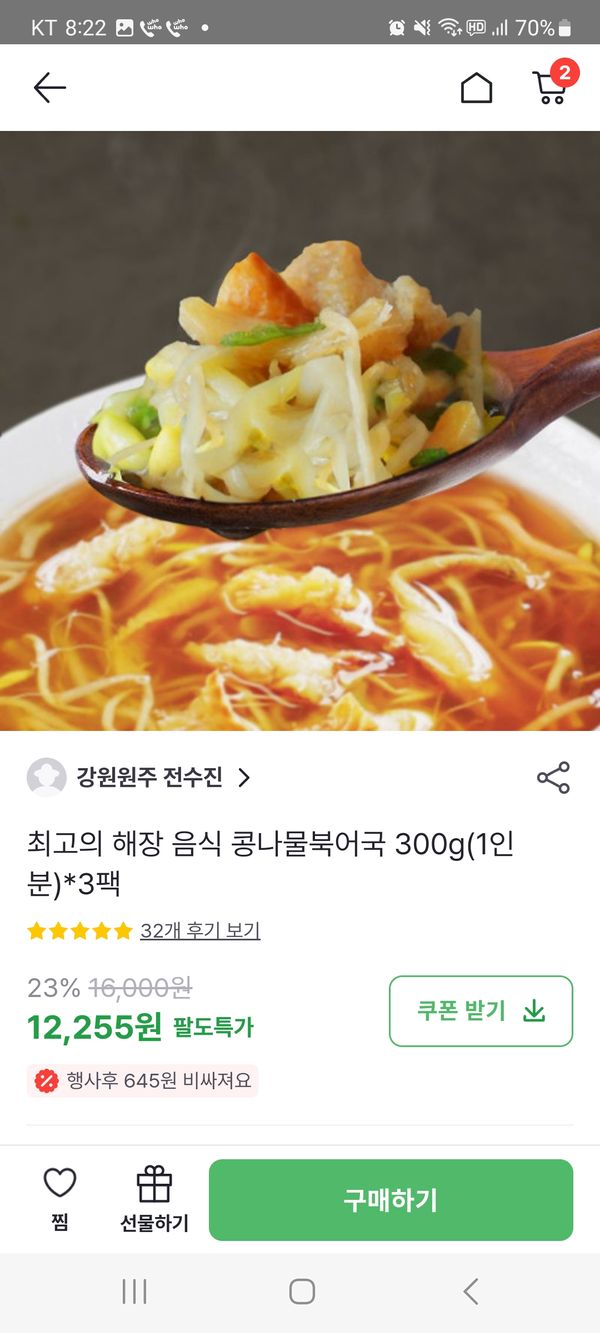 옵션: 콩나물북어국 300g(1인분)*3팩