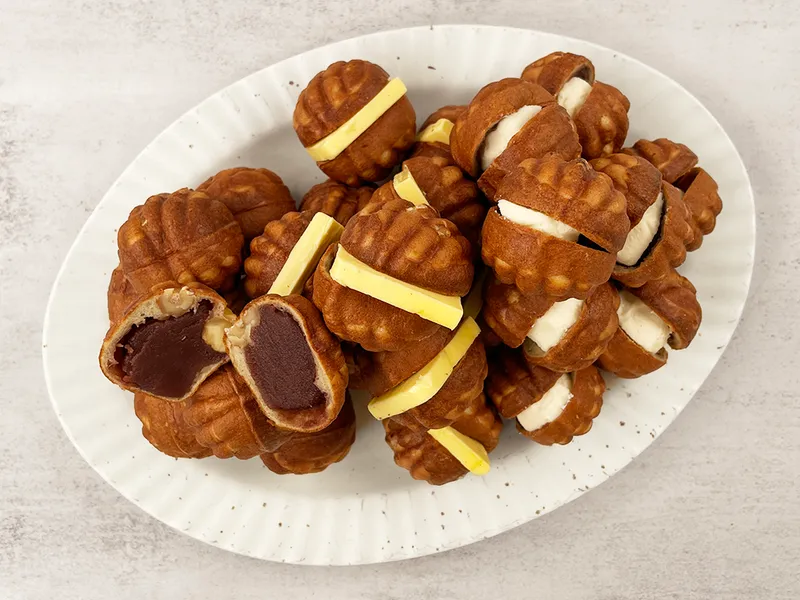 두툼한 미국산 고급 크림치즈가 한 알 통째로! 크림치즈의 담백함과 호두과자의 달콤함 조화를 느껴 보세요.