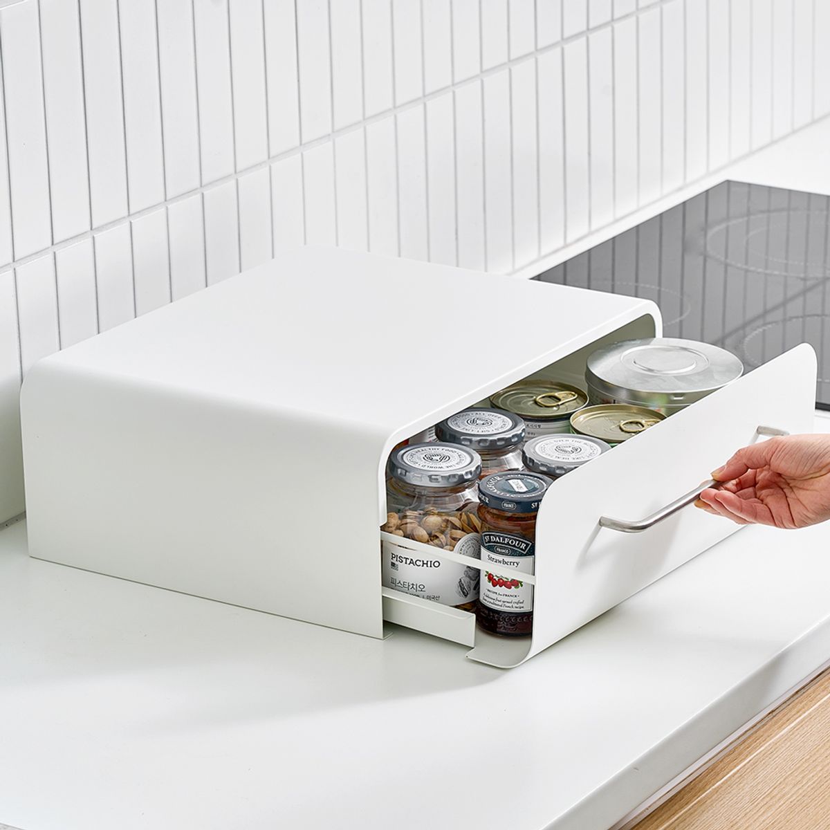 무디타 비화이트 철제 와이드 수납장 낮은형 (40cm) / 슬라이드 서랍장 양념통 정리 선반 캡슐보관함