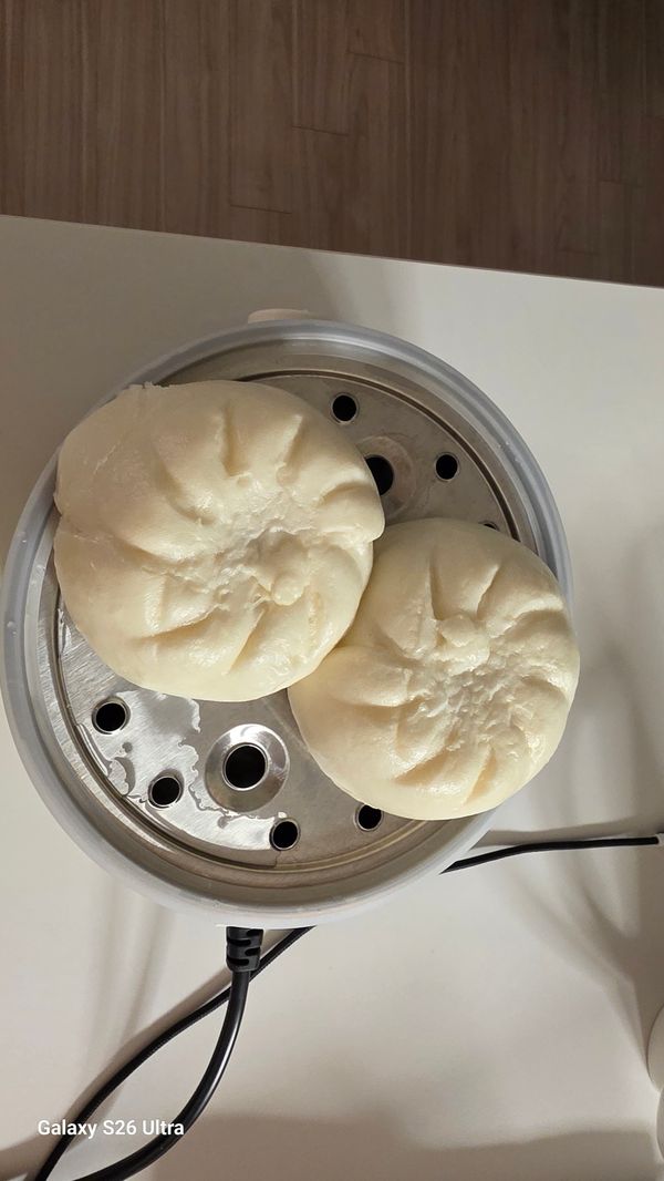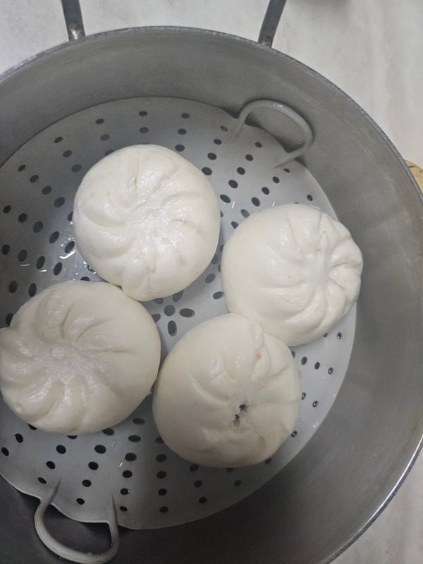 수령하자마자 찐빵 2개를 전자렌지에 5분 돌렸는데 돌멩이가 되었어요. 다시 3개를 찜기에 쪄서 배불리 먹었네요.
