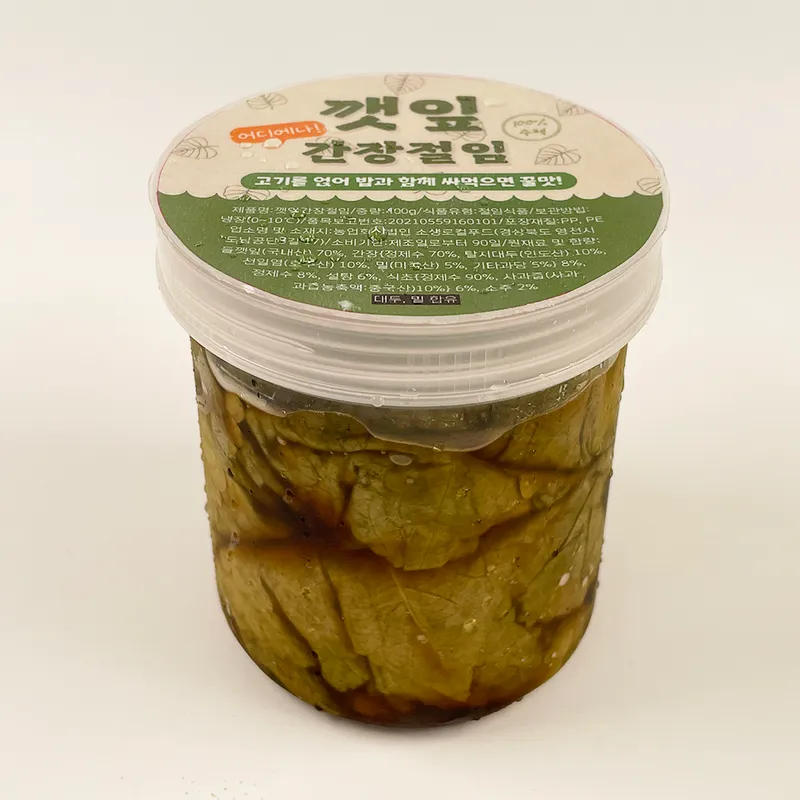 짙은 녹색을 띄며 잔털이 선명한 국내산 들깻잎을 엄선하여 사용합니다. 가장자리가 선명하고 뒷면이 보랏빛인 싱싱한 깻잎만을 선별하기에 풍부한 맛과 향은 제가 보장합니다!