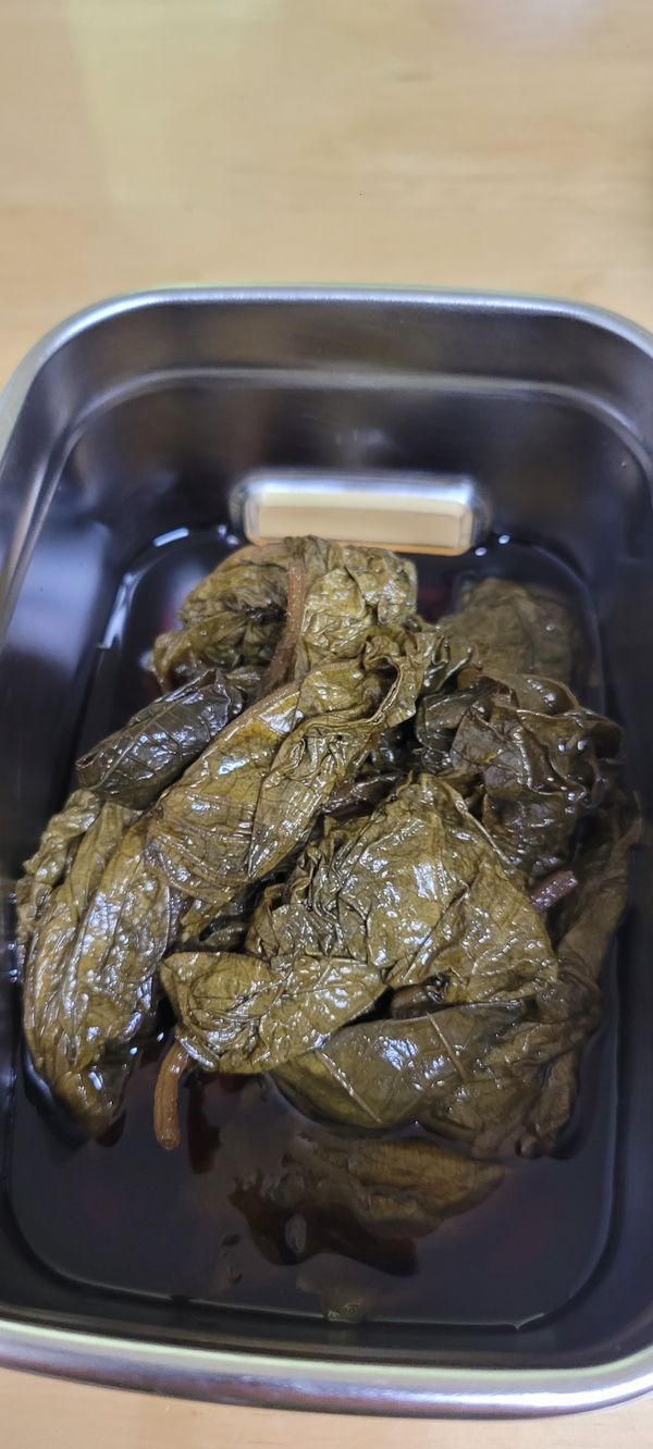 깻잎은 새콤달콤한게 입맛돌게 하네요 저녁먹기전도착해서 바로 꺼내서 사위도딸도 맛있다고 잘먹는 도중에 긴머리카락이 깻잎사이에 하나가들어있어 그만 입맛이 뚝떨어져버렸네요 위생에 조금더신경써서 해줬음