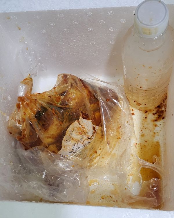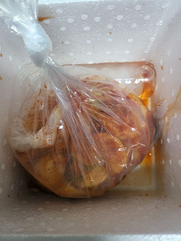 김치는맛이좋아요 네번째시켜억어요 이번배송상태는 비닐이터져서김치국물이 밬으로흘렀네요