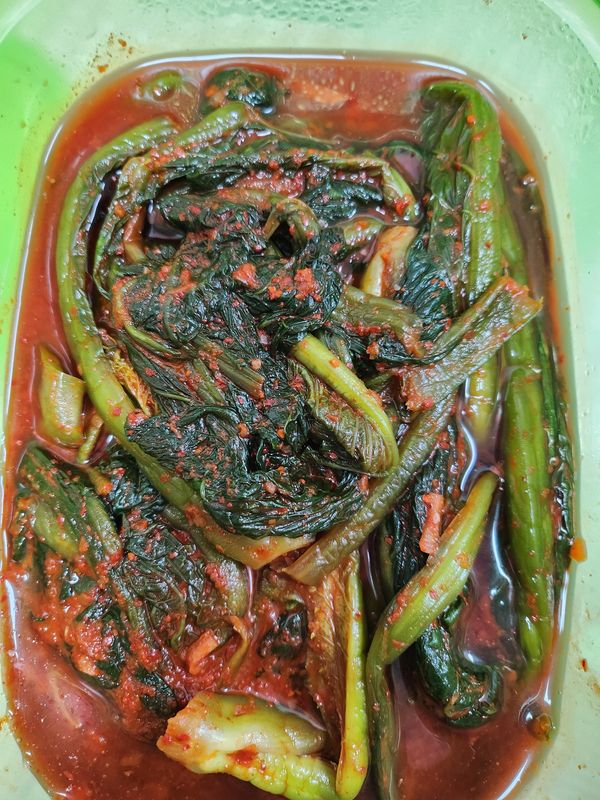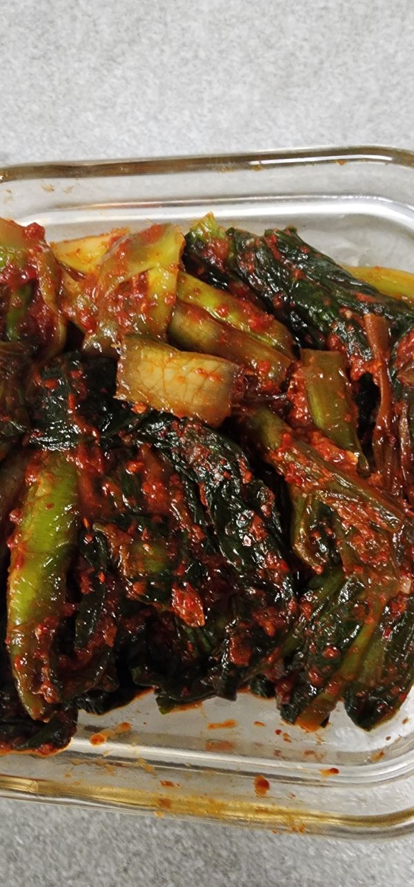 톡쏘는 갓김치의 알싸한 맛이 양념이랑 어우러져 너무 맛있어요 갓버무려져 와서 숙성해서 먹으면 더 맛있을거 같아요