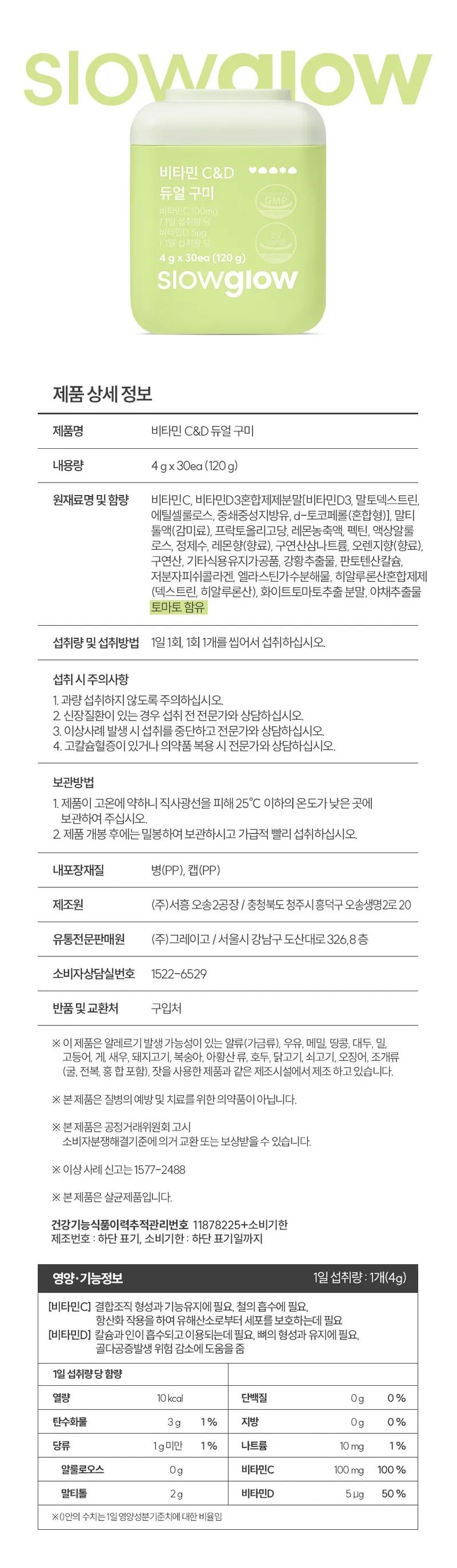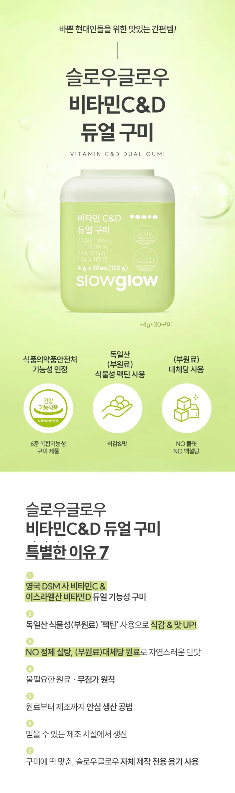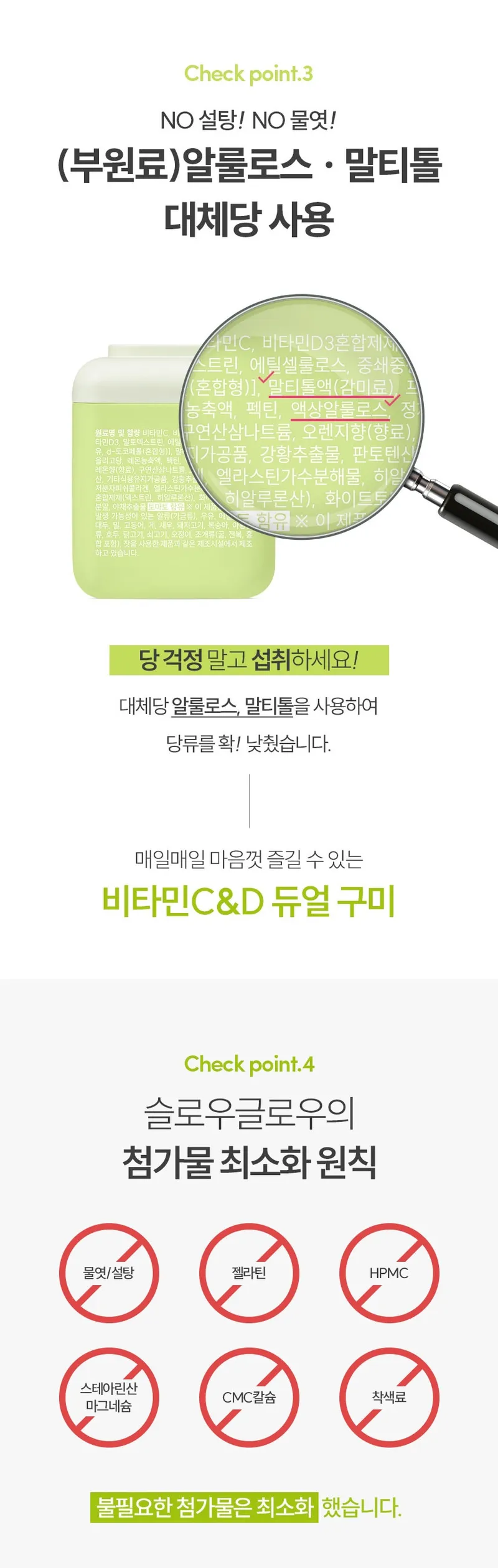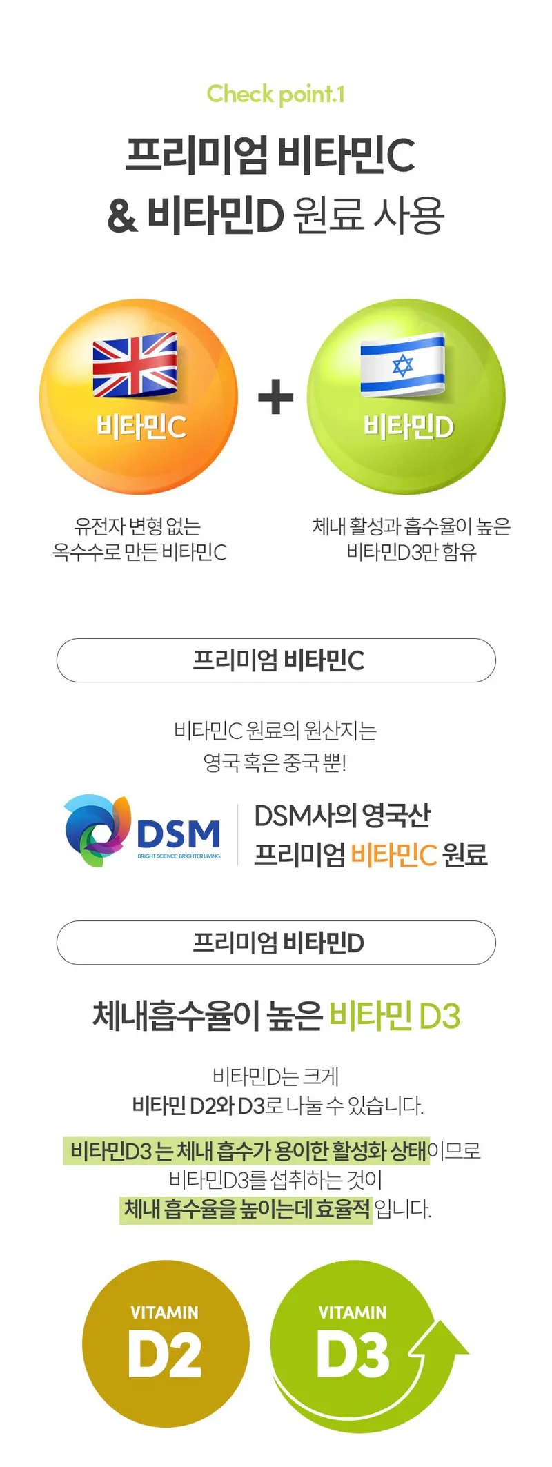 프리미엄 이스라엘산 비타민D, 비타민C 원료를 사용했어요! 1일 1구미 섭취 시 당류 0g으로 당류까지 신경썼답니다!