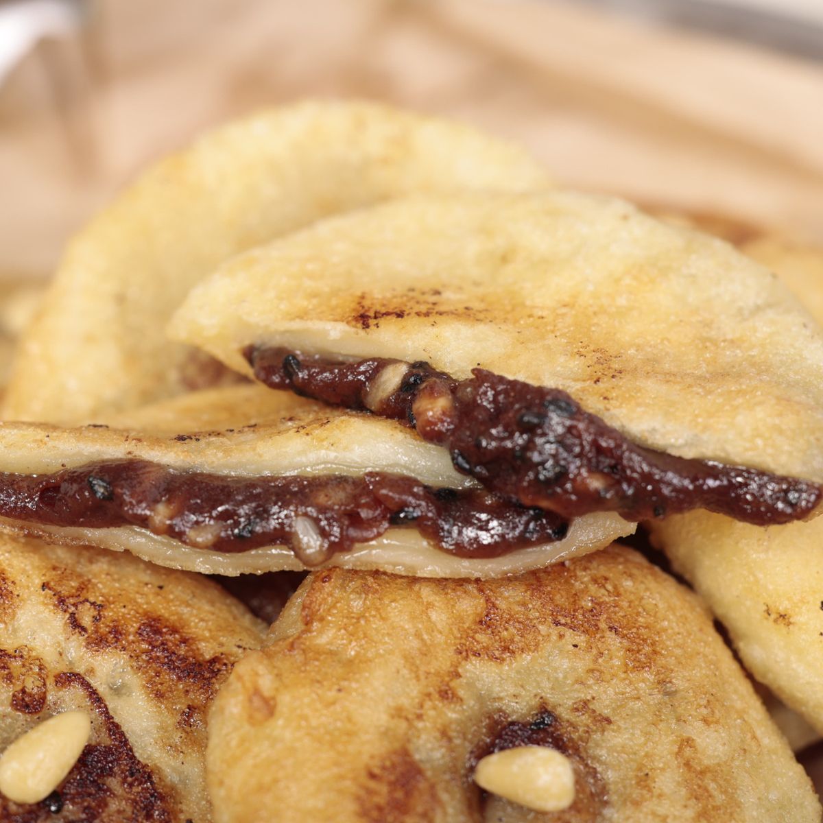 바삭하게 구운 겉면과 쫀득한 속의 식감이 조화로워 매력적인 호떡이에요. 흑설탕과 고소한 땅콩, 은은한 계피가 어우러진 달콤한 앙금이 가득 들어있어요. 한 입 베어 물면 풍성한 맛과 향이 가득 퍼져요.