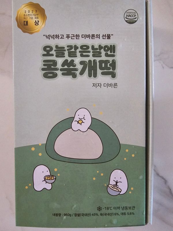 우선 맛이 넘 좋아서 강추^^드려요 본연의 쑥항기와 팥앙금이 어우러진데다 콩가루의 고소함이 더해져서 맛이 더욱 좋습니다. 평소 팥떡을 좋아하는편인데, 냉동실에 넣어두었다가 해동후에 먹어도 촐깃한게 더 맛있습니다.