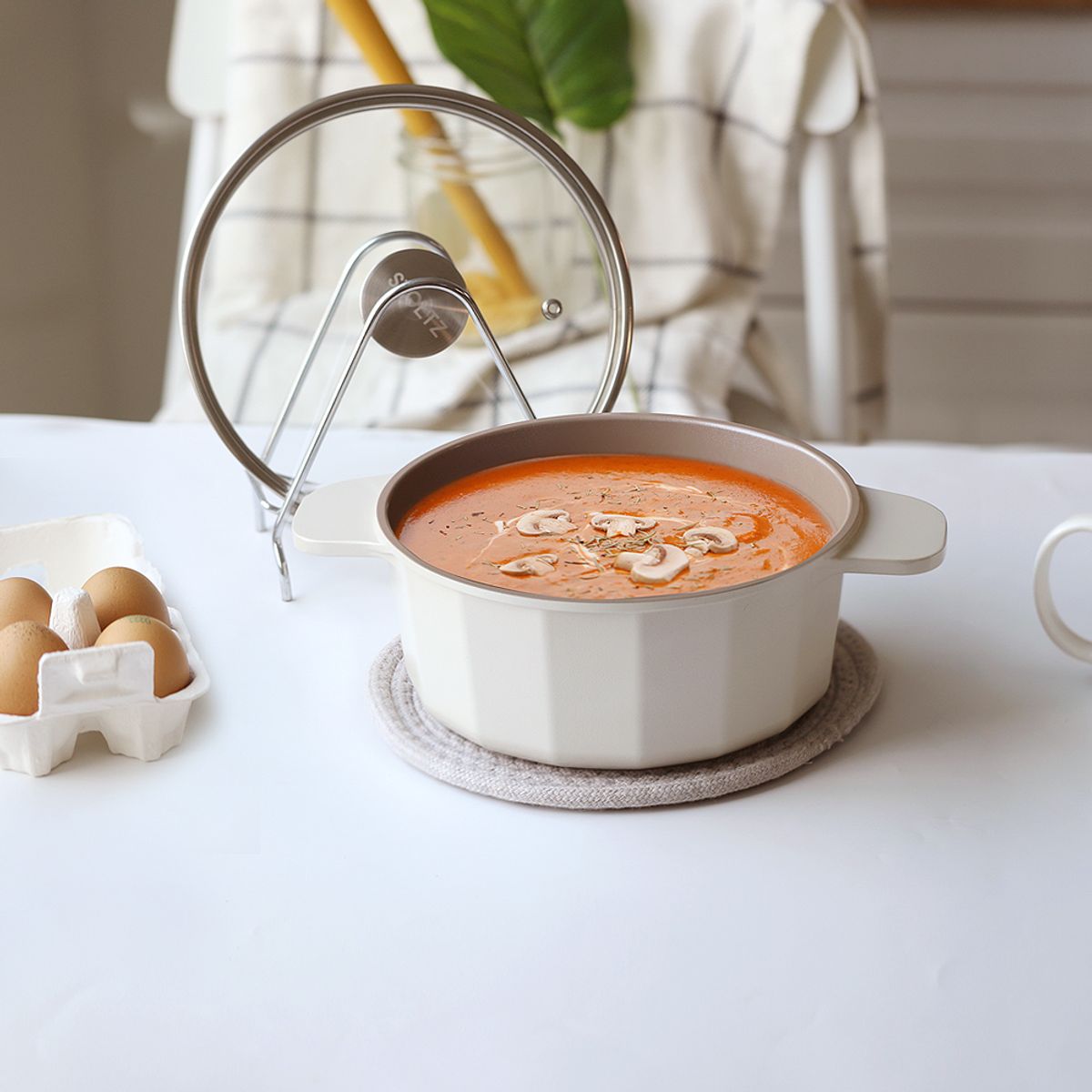 크림 감성 쿡웨어 IH 인덕션 겸용 세라믹코팅 양수 냄비 20cm