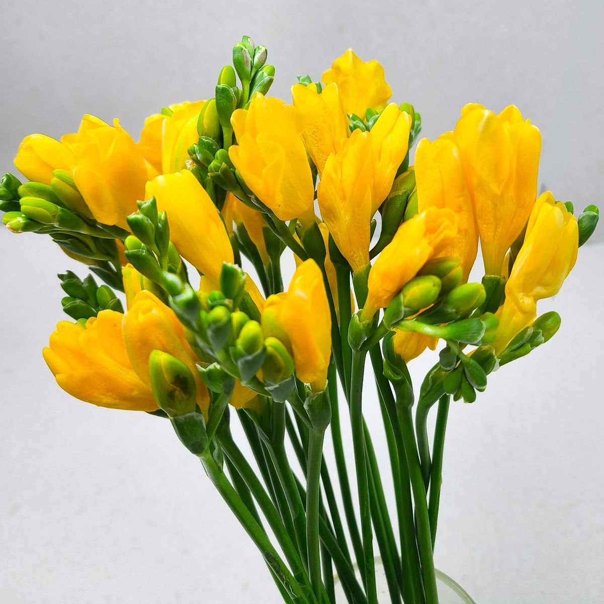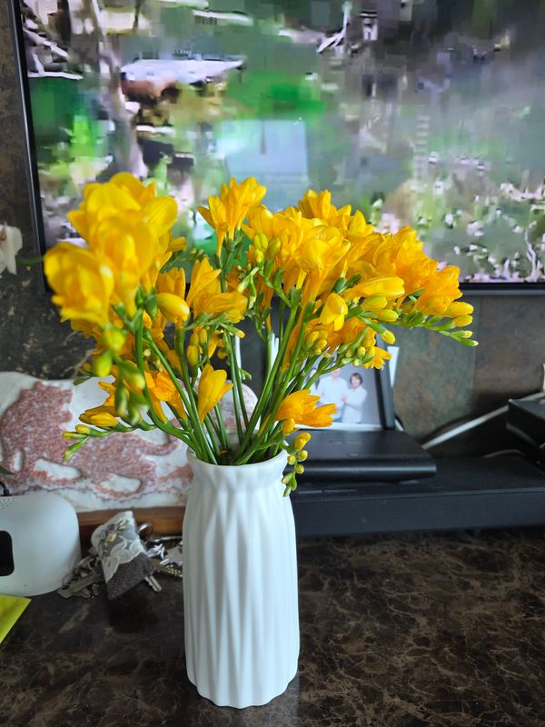 60송이 주문했는데 처음 20송이만 왔고 나중에 40송이가 추가로 배송되었어요 봄이 오면 늘 노란 프리지아를 풍성히 꽂아서 집안 분위기를 바꿔 주곤 해요 향이 은은하게 퍼지면서 기분 좋아지거든요