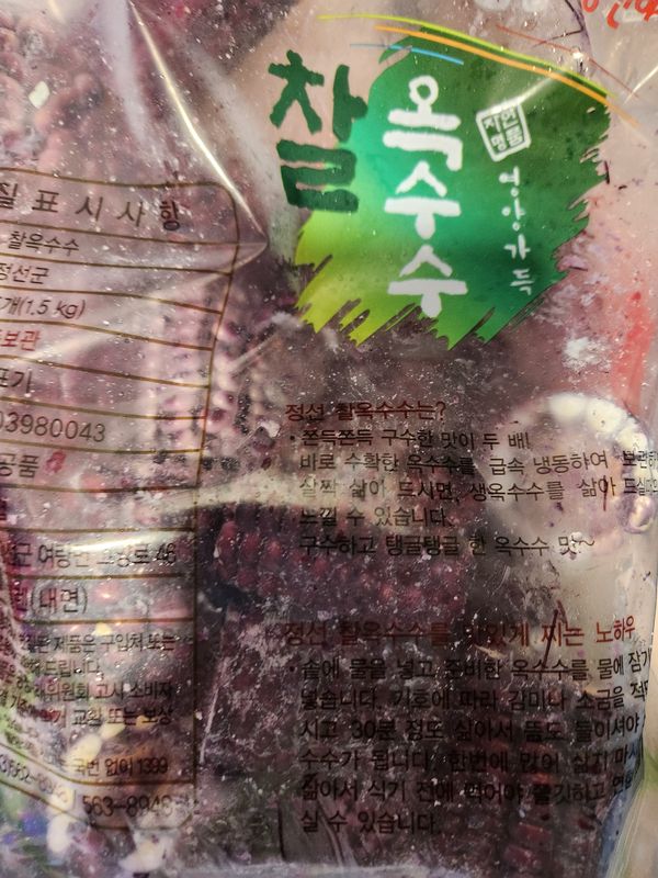 아직 먹어보진 않았지만 처음보는 옥수수라 구매해봤어요 색이 정말이쁘네요~~~