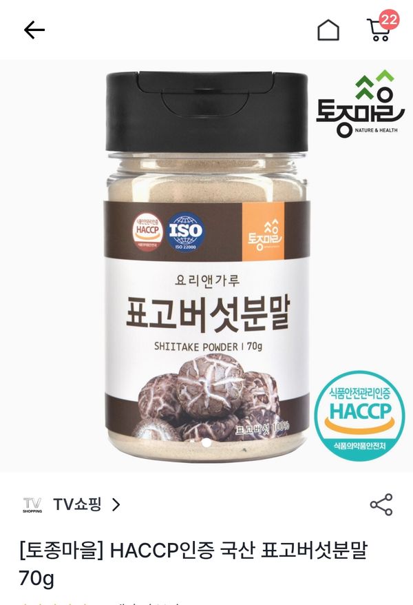 [토종마을] HACCP인증 국산 표고버섯분말 70g
