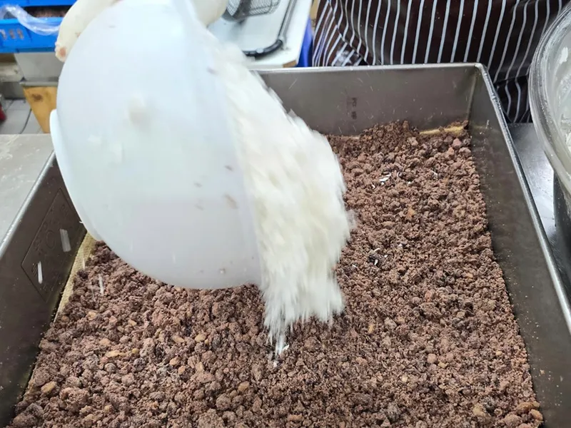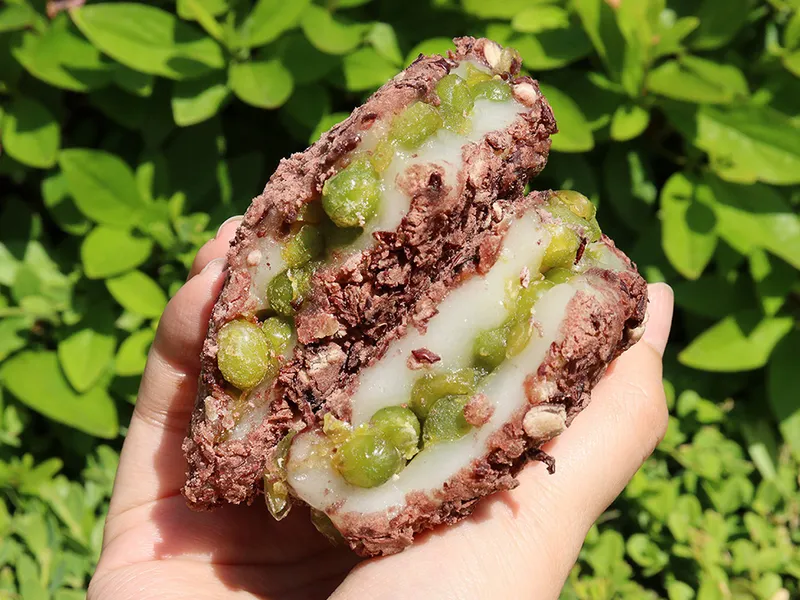 첨가물을 넣지 않고, 부드럽고 고소한 통팥 고물과 달큰한 완두배기 본연의 맛을 살렸어요. 특히 완두배기는 자체가 달기 때문에 당도를 낮추는 까다로운 작업을 추가했답니다. 설탕의 단맛이 아닌, 재료 본연의 맛으로 은은한 달큰함과 담백함이 균형을 이뤘어요!