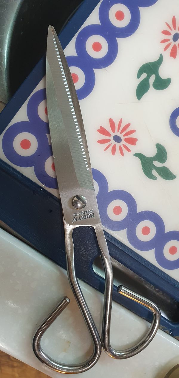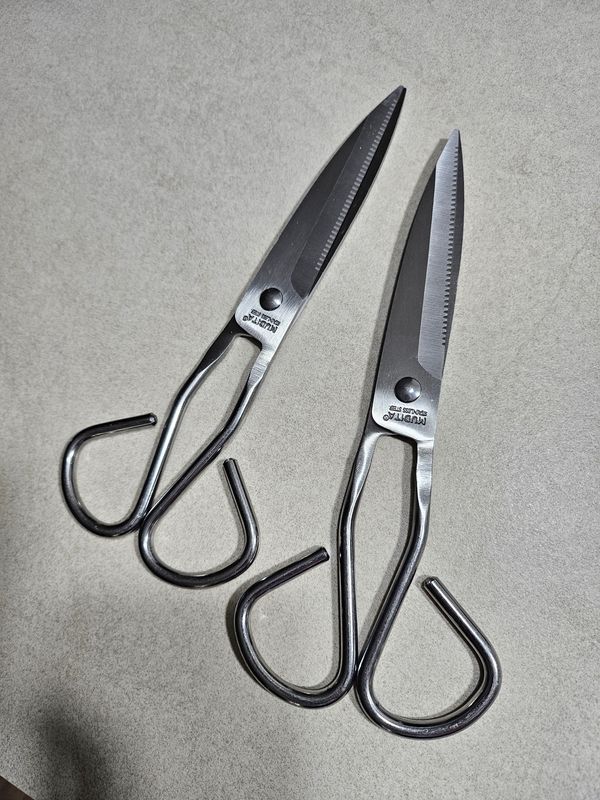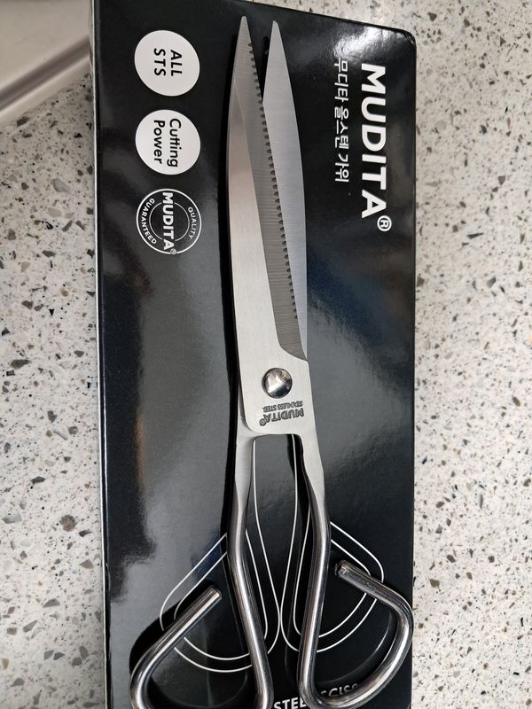 주방가위 바꾸려고 생각하고 있었는데 디자인이 살짝 옛날 엿장수가위 같은 느낌에 올 스테인레스 재질이라 손잡이에 음식물 끼임도 없을 것 같고 좌우구분 없는 양손 디자인이라 해서 바로 주문 결정했습니다. 거기다 1개가 아닌 2개..