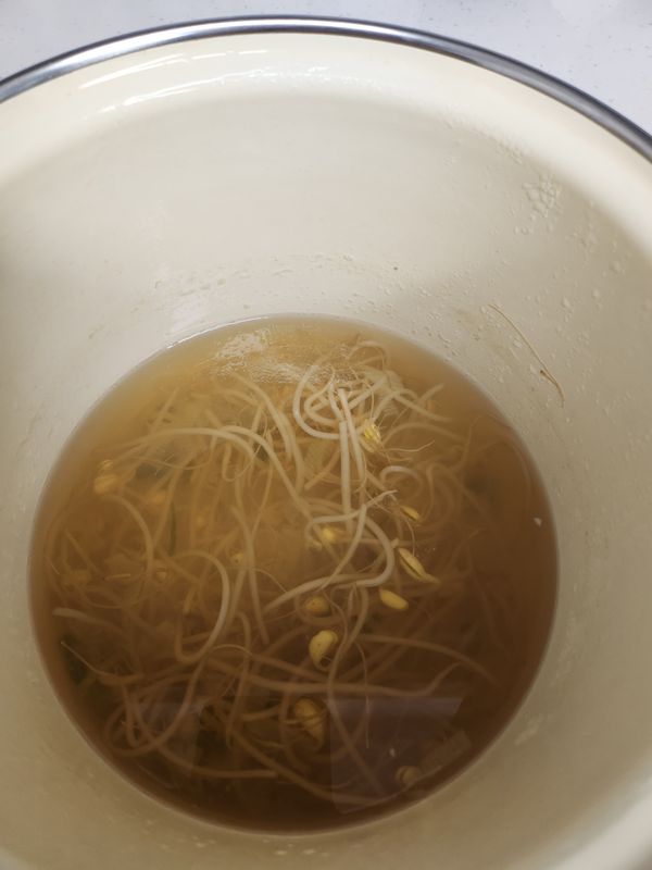 육수 도착하자마자 콩나물국 진하게 끊였습니다