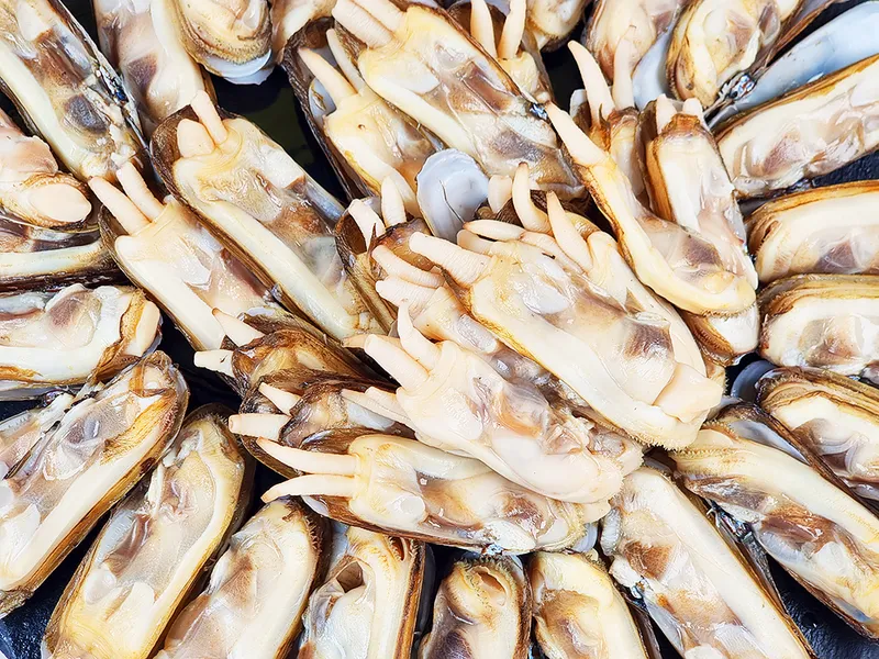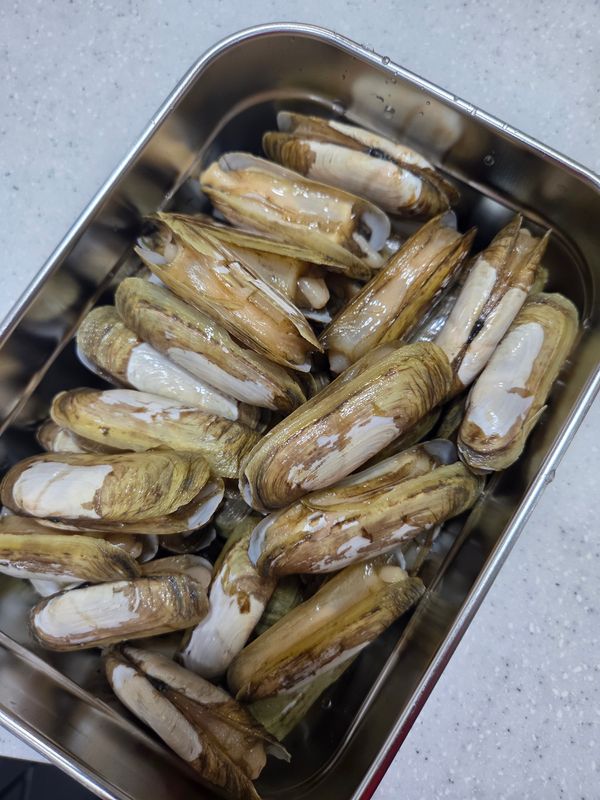 동글동글한 일반 조개와 달리 길쭉한 모양으로 통통하면서도 쫄깃한 식감이 일품! 조개의 달큼한 감칠맛까지 제대로 즐기실 수 있습니다.