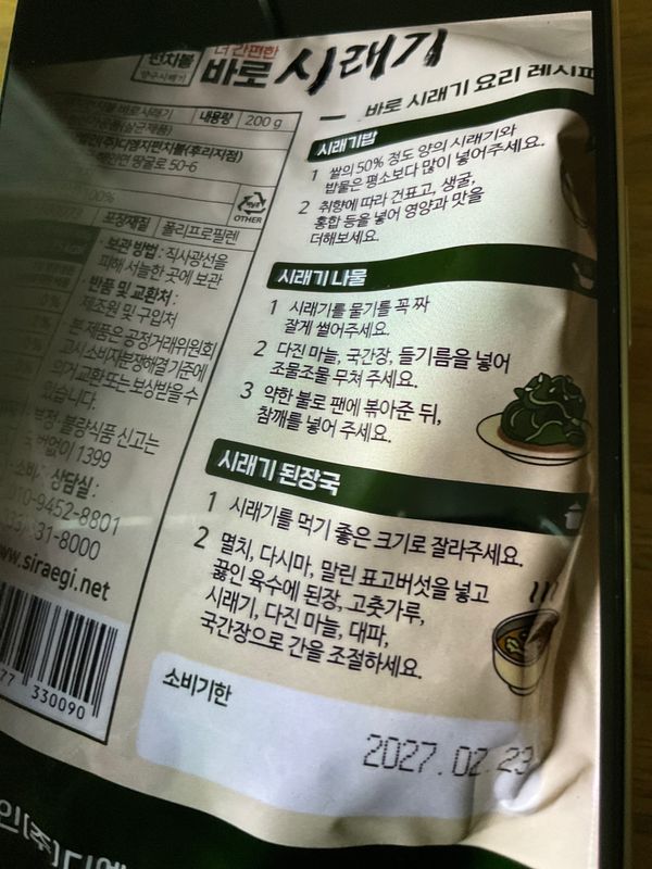 냉도보관해야하는 시래기는 오래되며누질겨지는데 이건 상온보관이 오랫동안 가능한데다가 찐짜 부드러워서 좋아요 물론 방부제는 많이 들어갔겠지만요..
