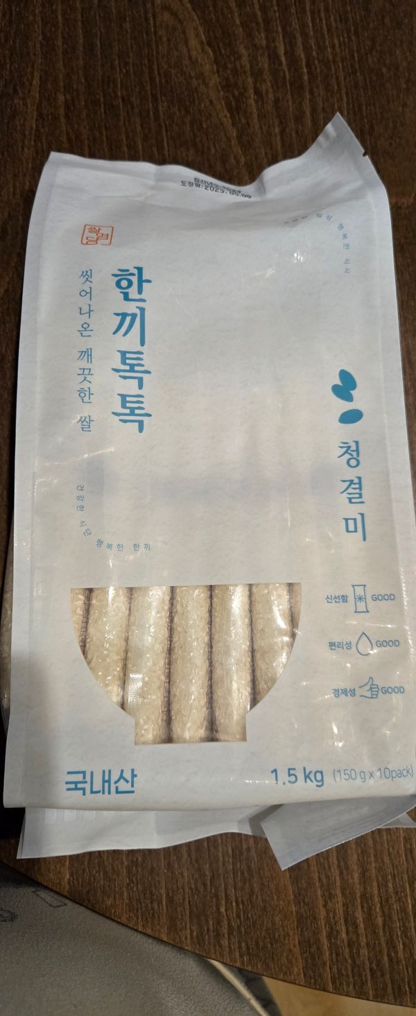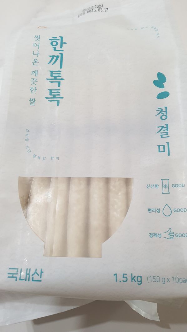 자취중인 소중한 아들을 위해 재구매!!! 공부하랴 혼자 끼니 해결하랴 바쁜 왕초보 요리사를 위해 쌀 씻는 번거로움과 귀차니즘을 해결해 주기 위해 다시 주문 했습니다. 1인분씩 세척하여 진공포장해서 조리도 간편하고 건강도 챙길 수 있어 좋아하네요^^