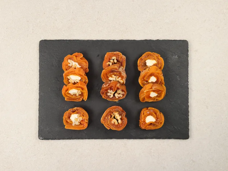 디저트로 먹기 좋은 곶감 호두말이 3종을 준비했어요. 달ㄷ라한 곶감과 고소한 리코타치즈와 호두의 맛스러운 조화를 직접 경험하실 수 있습니다. 겉은 쫀득하고 속은 풍미가 가득해 지루할 틈이 없어요!
