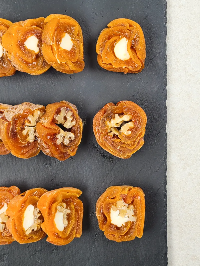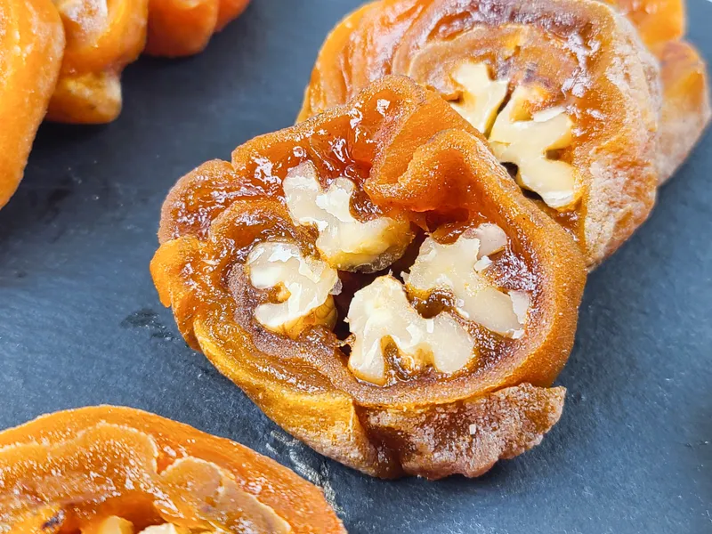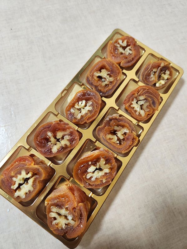 오도독오도독 씹히는 고소한 호두를 품은 곶감말이입니다.