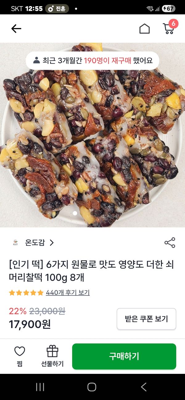 떡은 늘 팔도감에서 주문해서 먹는데 쇠머리찰떡도 쫀득하고 고명도 많아 아침식사대용으로 좋아요 크기도 작지않고 렌지에 30초정도 돌린뒤 먹음 찰지고 맛나여~ 담에 1÷1행사하면 좋겠어용ㅋ